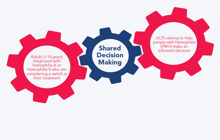 Zajedničko donošenje odluka (engl. Shared Decision Making – SDM) strukturirani je proces u kojemu pacijent i njegov zdravstveni tim zajedno razmatraju i donose odluke o liječenju hemofilije. Ovaj pristup uzima u obzir pacijentove životne ciljeve, osobne želje i vrijednosti, dostupne terapijske mogućnosti te relevantne medicinske informacije o svakoj od njih.
