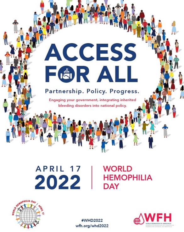Ovogodišnji moto Svjetskog dana hemofilije je „Access for All: Partnership. Policy. Progress“